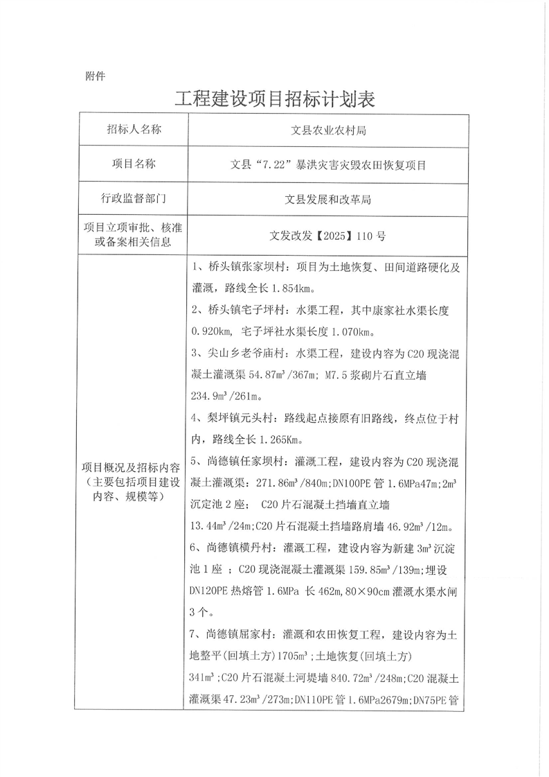 文縣“7.22”暴洪災害災毀農(nóng)田恢復項目