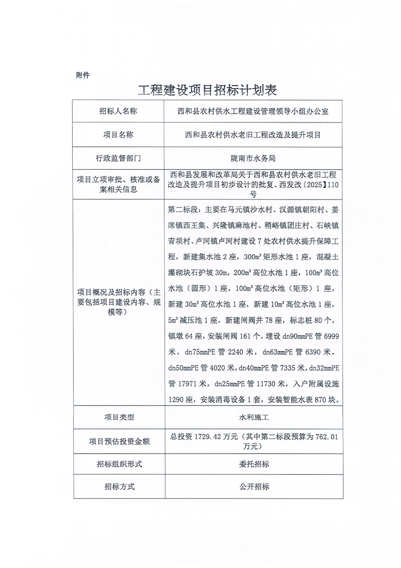 西和縣農村供水老舊工程改造及提升項目