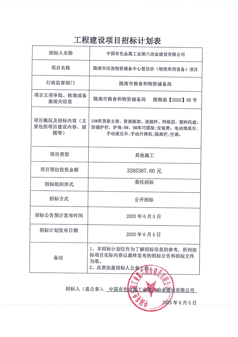 隴南項(xiàng)目暫估價物資庫用設(shè)備招標(biāo)計(jì)劃表(1).pdf