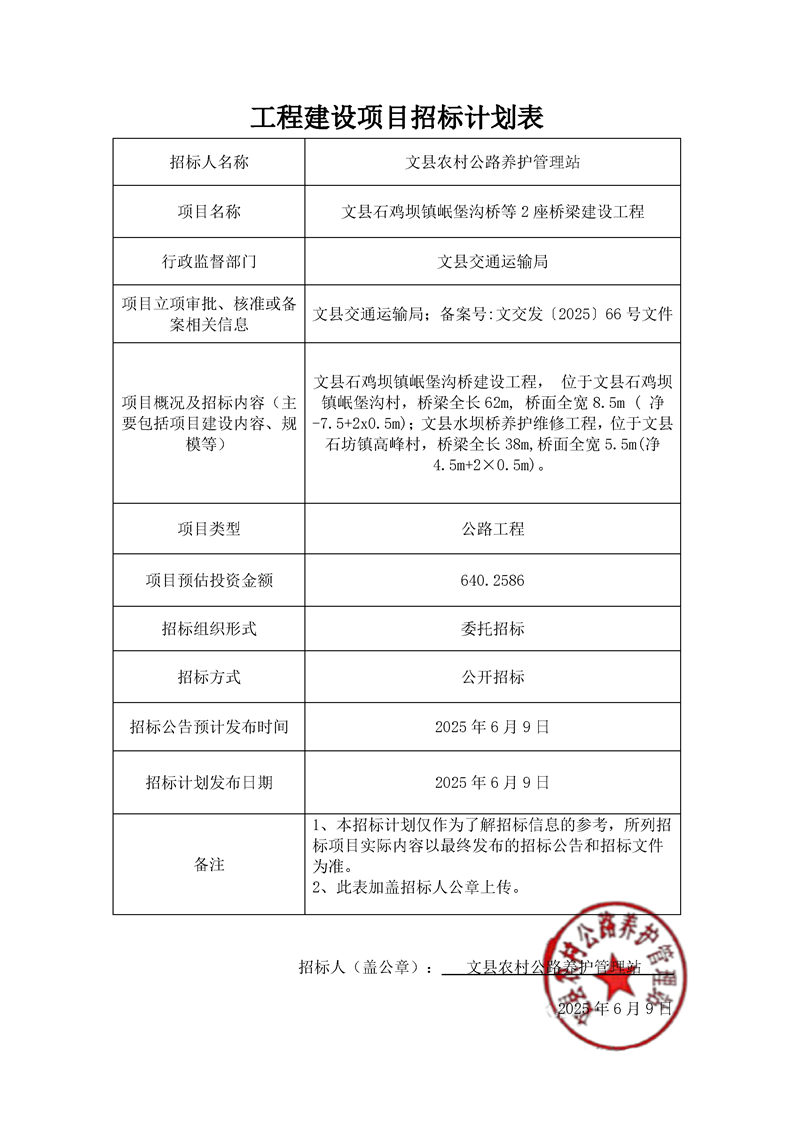 文縣石雞壩鎮(zhèn)岷堡溝橋等2座橋梁建設工程