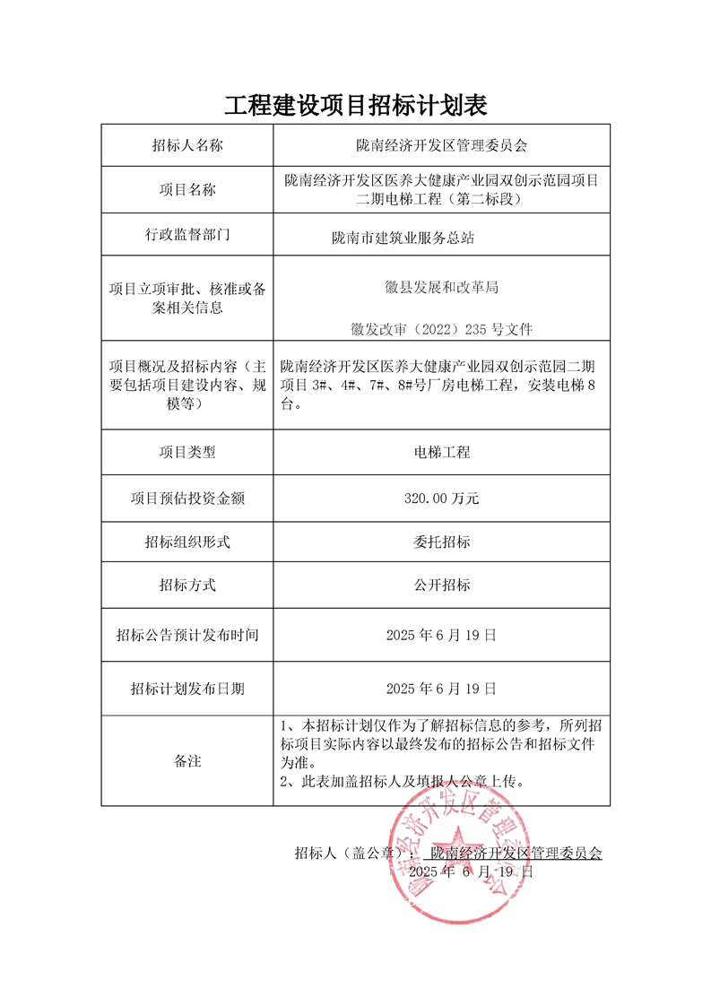 隴南經(jīng)濟(jì)開(kāi)發(fā)區(qū)醫(yī)養(yǎng)大健康產(chǎn)業(yè)園雙創(chuàng)示范園項(xiàng)目二期電梯工程(第二標(biāo)段)