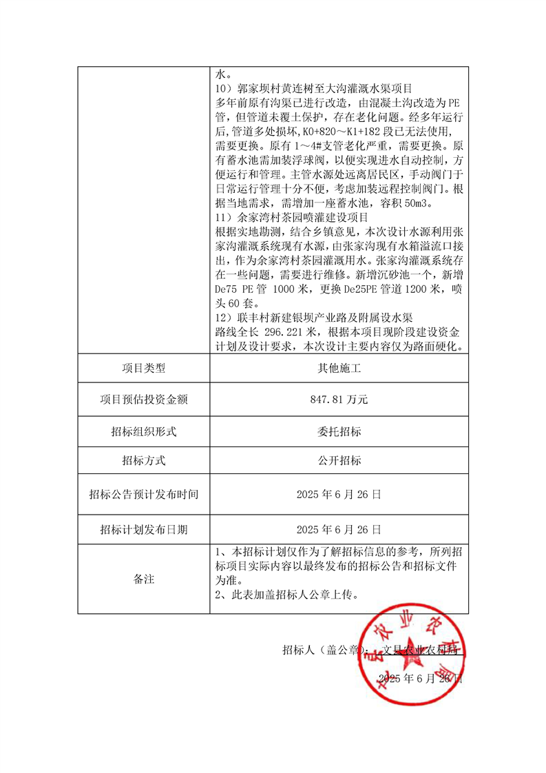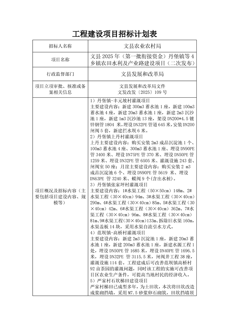 文縣2025年(第一批銜接資金)丹堡鎮(zhèn)等4鄉(xiāng)鎮(zhèn)農(nóng)田水利及產(chǎn)業(yè)路建設項目(二次發(fā)布)