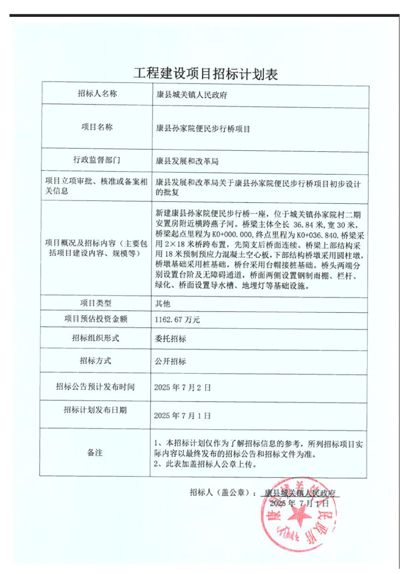 康縣孫家院便民步行橋項(xiàng)目