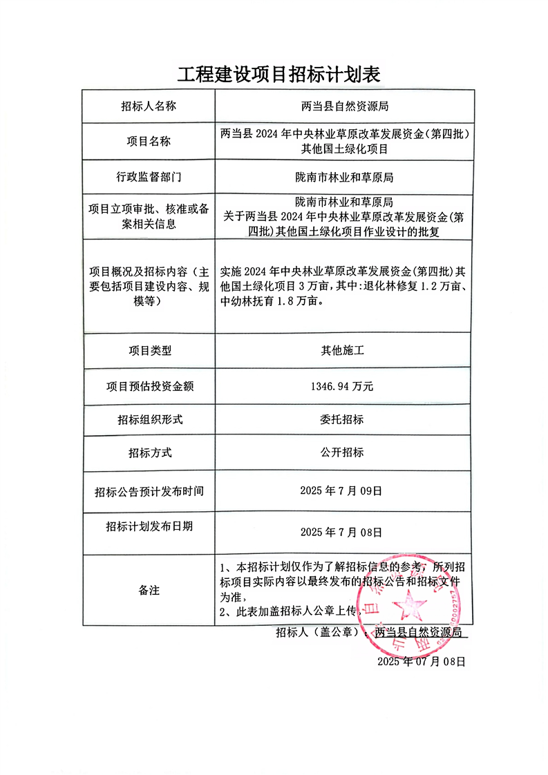 兩當(dāng)縣2024年中央林業(yè)草原改革發(fā)展資金(第四批)其他國(guó)土綠化項(xiàng)目