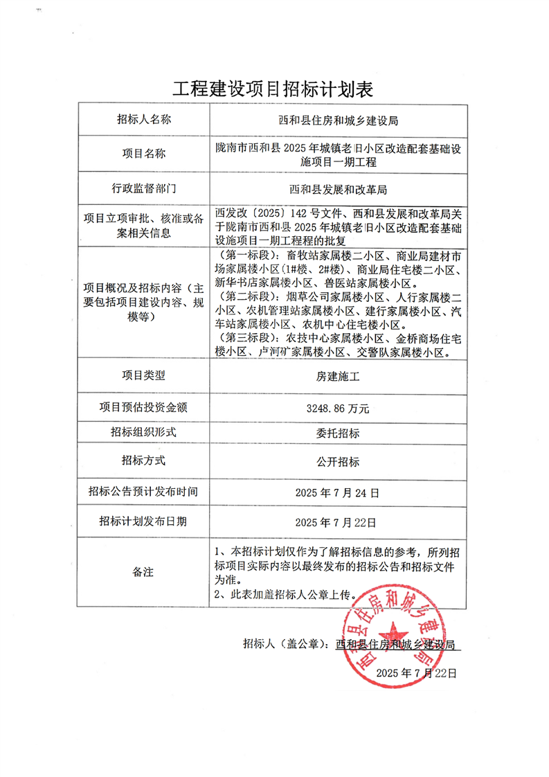 隴南市西和縣2025年城鎮(zhèn)老舊小區(qū)改造配套基礎(chǔ)設(shè)施項目一期工程
