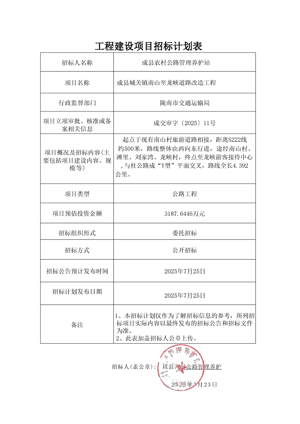 成縣城關鎮(zhèn)南山至龍峽道路改造工程