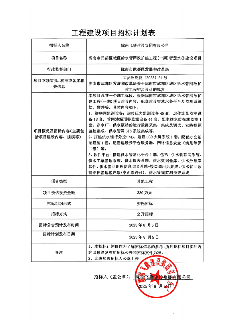隴南市武都區(qū)城區(qū)給水管網(wǎng)改擴建工程(一期)智慧水務建設項目