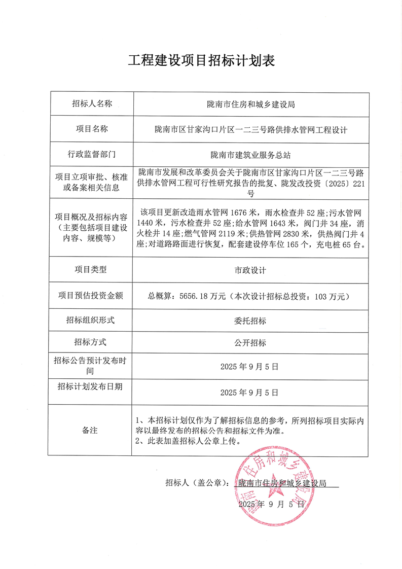 隴南市區(qū)甘家溝口片區(qū)一二三號路供排水管網(wǎng)工程設計