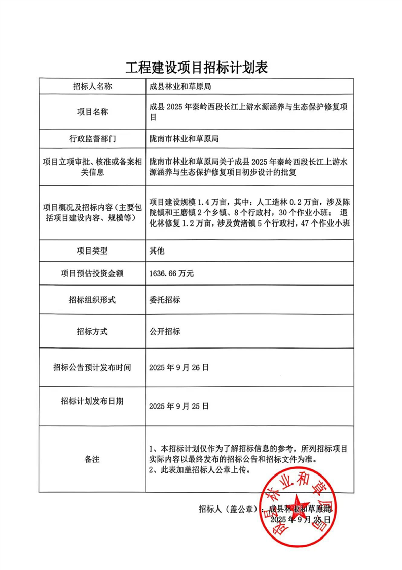成縣2025年秦嶺西段長江上游水源涵養(yǎng)與生態(tài)保護修復項目