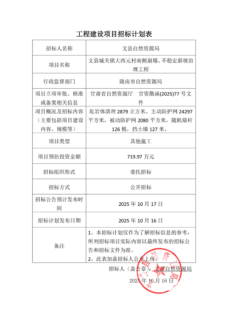 文縣自然資源局工程建設(shè)項目招標(biāo)計劃.pdf