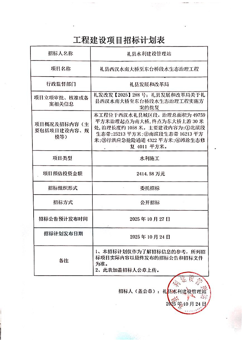 禮縣西漢水南大橋至東臺橋段水生態(tài)治理工程