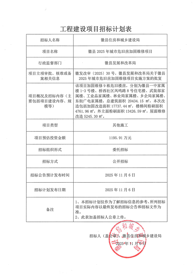 徽縣2025年城市危舊房加固維修項目計劃表.pdf
