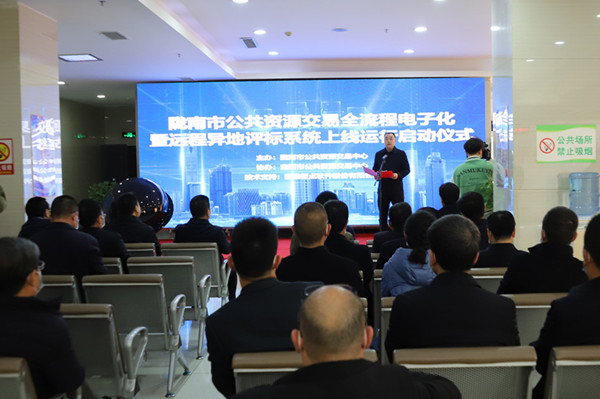 啟動(dòng)儀式上,中心黨組書記、主任張巍做了致辭,并向參會(huì)嘉賓播放了市公共資源交易中心工作匯報(bào)專題視頻。隨后大家通過大屏幕觀看了隴南-定西兩地評(píng)委實(shí)時(shí)遠(yuǎn)程異地評(píng)標(biāo)情景畫面;兩地專家準(zhǔn)備就緒后,與會(huì)領(lǐng)導(dǎo)發(fā)送系統(tǒng)啟動(dòng)指令,共同見證了隴南市公共資源交易全流程電子化暨遠(yuǎn)程異地評(píng)標(biāo)系統(tǒng)上線運(yùn)行。