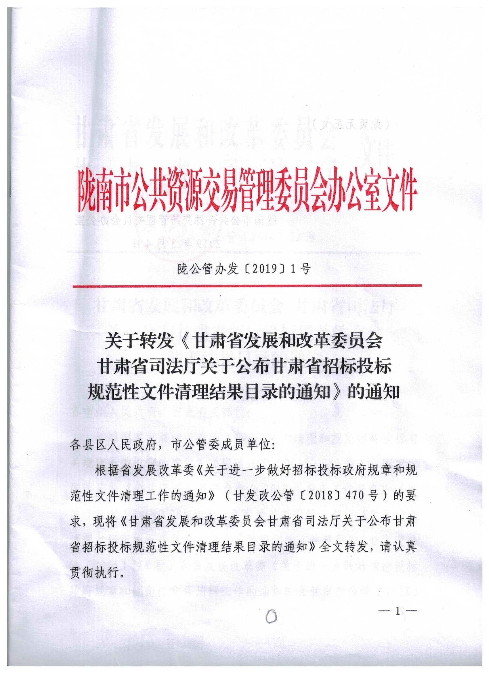 甘肅省發(fā)展和改革委員會 甘肅省司法廳關于公布甘肅省招標投標規(guī)范性文件清理結果目錄的通知