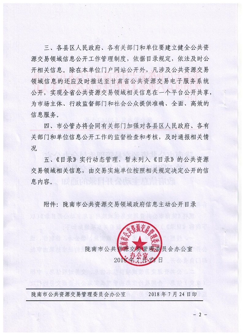隴南市公共資源交易管理委員會(huì)辦公室關(guān)于印發(fā)隴南市公共資源交易領(lǐng)域政府信息主動(dòng)公開目錄的通知